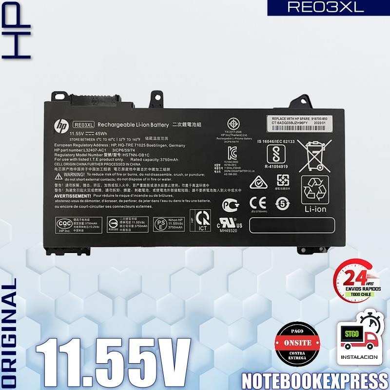 Batería HP Probook 455-G7 RE03XL ☼ Santiago Gratis