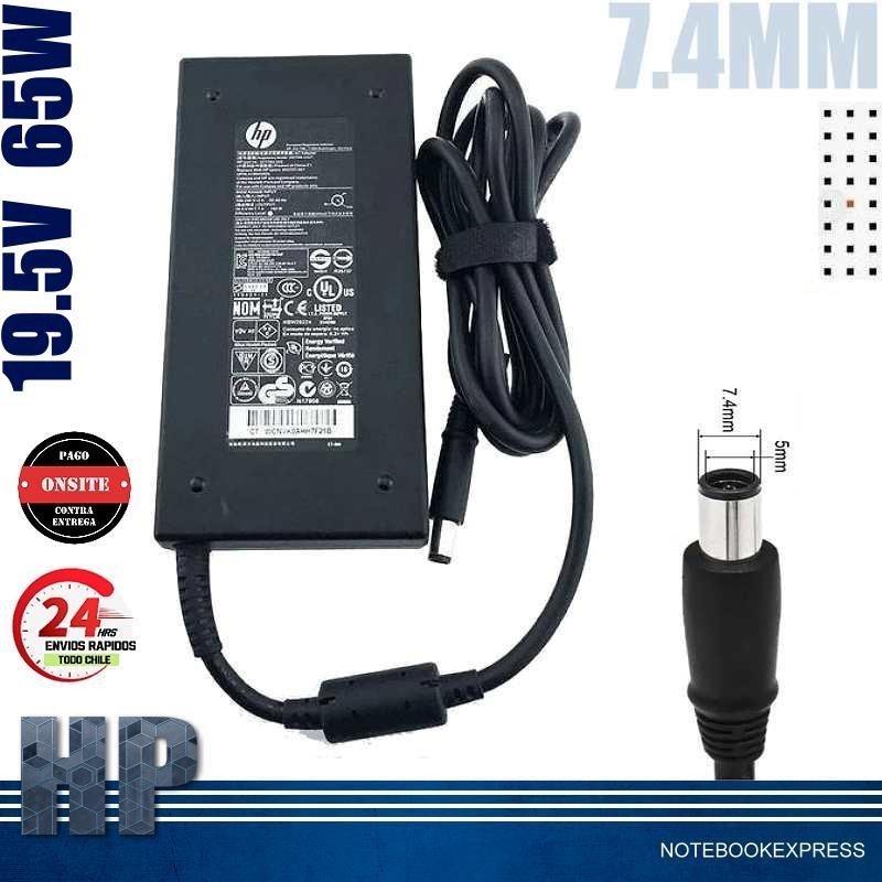 Cargador HP 19.5v 3.33A 65w 7.4mm19.5V ✓ Ahora con envío Gratis Stgo y Chile Central. Delivery Rápido. ☼ Garantía 6 meses